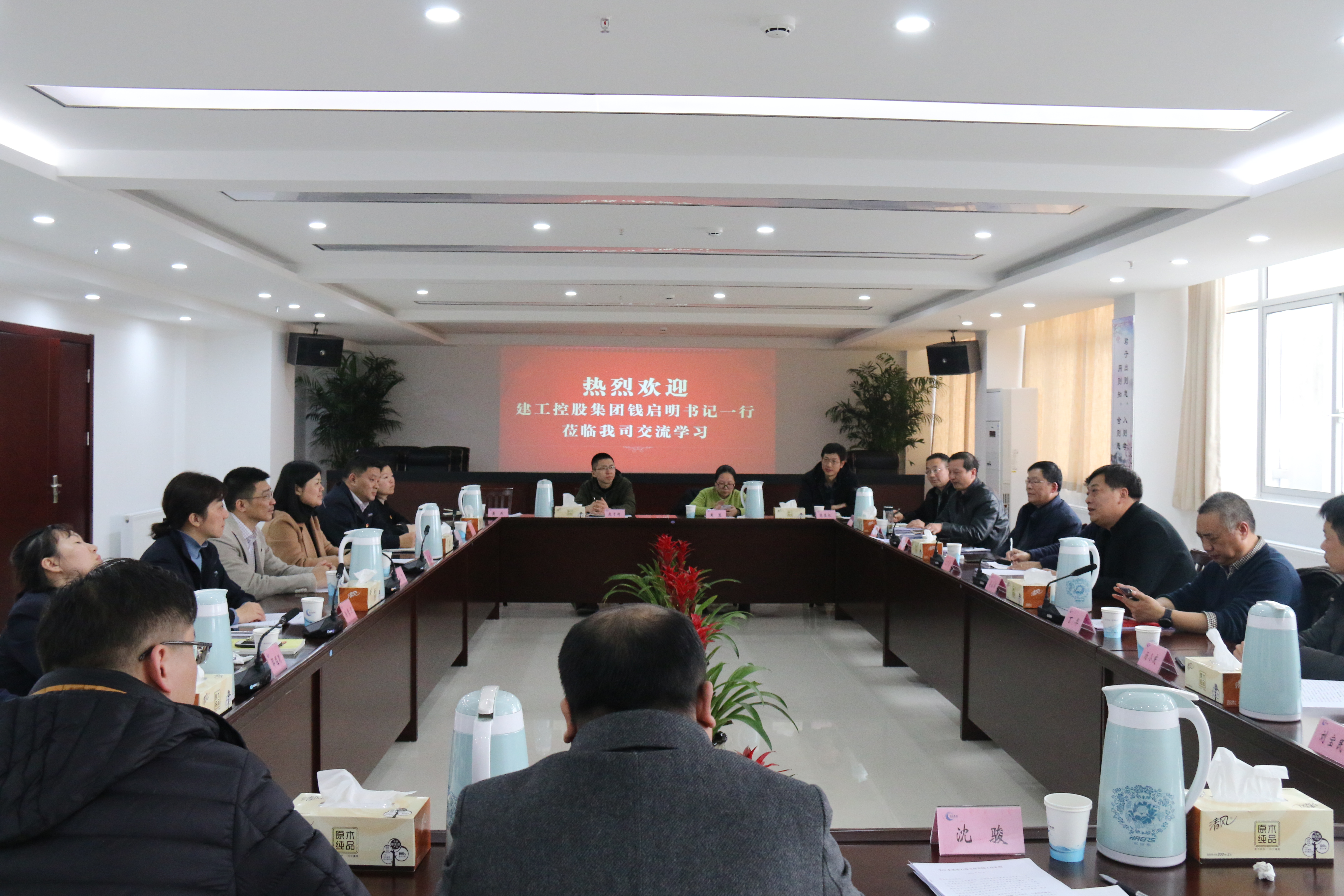 313日下午,建工控股公司黨委副書記、紀委書記錢啟明帶領下,揚州分公司丁華書記、張文和劉磊與其他在揚機構基層黨組織支部書記和黨務骨干一同赴江蘇長江水務公司開展黨建工作學習交流活動,城控集團黨委副書記、紀委書記徐飛等領導陪同參加。