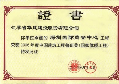 深圳國際商會中心位于深圳市福田中心區6-3地塊,是深圳市CBD標志性建筑,與會展中心隔街相望,是深圳會展經濟圈的地標,也是深圳第一座擁有智能門禁系統、第一座擁有酒店式行車大廳、中心區第一座擁有商務直升機停機坪的寫字樓。 本工程是集辦公與商業為一體的超高層民用建筑,地下3層地上55層,總建筑面積為134081.38平方米,建筑高度216米,結構形式上,主樓為內筒外框勁性混凝土結構,外墻裝飾主要采用玻璃幕墻,干掛花崗巖和復合鋁板。本工程于2002年9月3日開工,2004年12月16日竣工。2003年下半年被評為深圳市優質結構工程,2004年下半年先后通過了深圳市建筑業新技術應用示范工程驗收和江蘇省第八批新技術應用示范工程驗收,新技術應用“總體上達到國內領先水平”。此工程應用了建筑業10項新技術中的9項,其他新技術8項,重點創新新技術2項。在施工過程中,多次受到有關各方組織的觀摩會、參觀會,2005年獲深圳市優質工程“金牛獎”、廣東省“金匠獎”、江蘇省“揚子杯”,并榮獲“中國十大金牌寫字樓”榮譽稱號。2006年獲全國建筑最高獎——魯班獎。