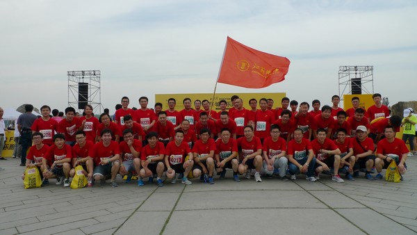 2013621下午,由知名房企萬科發起的“城市樂跑賽”北京站比賽在具有跑步圣地之稱的北京市奧林匹克森林公園南園舉行吸引了近百家企業的4000多名參賽者。活動開幕式由央視CCTV5豪門盛宴主持人張斌擔當,北京萬科總裁毛大慶先生等擔任發令人。央視著名節目主持人陳鐸、劉建宏,奧運會冠軍白雪、王麗萍萬科集團總裁郁亮等嘉賓領銜參賽,共同倡導跑的快樂、跑出健康的理念。公司作為萬科的戰略合作伙伴,也應邀組織機關和四處、安裝處、裝飾處等50名團員青年組隊參加了本次賽事,鍛煉了員工身體,展示了企業風采,取得了良好的效果。